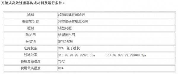 刀架式高效过滤器构成材料及运行条件