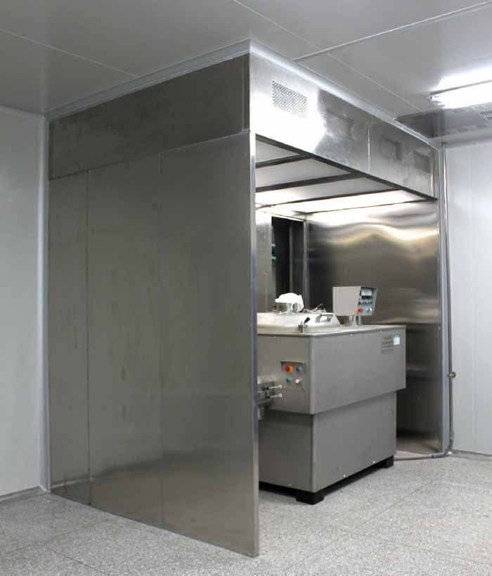 负压称量间在离心风机提供的压力下,通过高效过滤器,使之达到洁净要求。